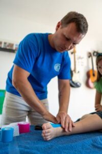 (eine spezielle Massage, die darauf abzielt, die Leistung von Sportlern zu verbessern, Verletzungen vorzubeugen und sie zu behandeln. Sie lockert Muskeln, verbessert die Durchblutung und Flexibilität)